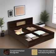 KYOTO King Size Bed With Storage In Dark Maple Colour